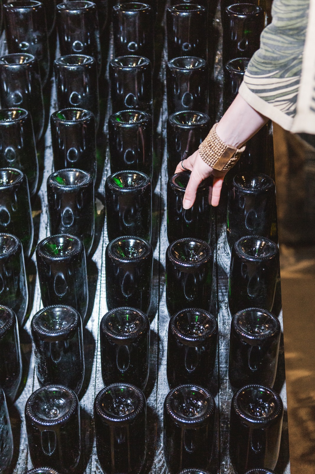 Le bottiglie vengono dunque chiuse con un tappo a corona (simile quello della birra) provvisto di un piccolo cilindro di plastica chiamato bidule. Vengono riposte orizzontalmente in cataste per iniziare la fase più lunga della produzione: l’affinamento sui lieviti.